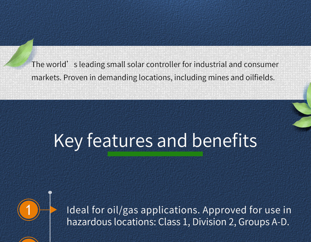| The world’s leading small solar controller for industrial and consumer markets. Proven in demanding locations, including mines and oilfields. |